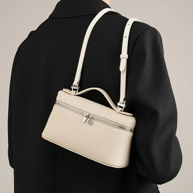 Confeccionada em couro macio de alta qualidade, esta bolsa oferece luxo e versatilidade em um design compacto.